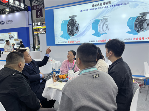 開展三日,杰凱流體展位始終人氣匯聚。我們重點(diǎn)展示了新品MGV罐裝永磁直驅(qū)泵,這款專為泛半導(dǎo)體、儲(chǔ)能、光伏等行業(yè)打造的化工泵,吸引了大量電路板生產(chǎn)廠商、設(shè)備集成商及技術(shù)決策者的駐足咨詢。
