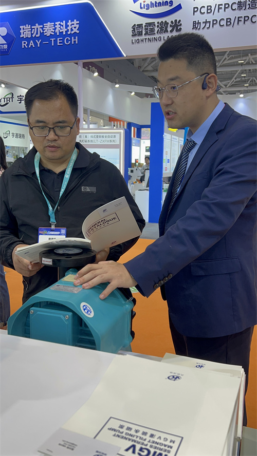 開展三日,杰凱流體展位始終人氣匯聚。我們重點(diǎn)展示了新品MGV罐裝永磁直驅(qū)泵,這款專為泛半導(dǎo)體、儲(chǔ)能、光伏等行業(yè)打造的化工泵,吸引了大量電路板生產(chǎn)廠商、設(shè)備集成商及技術(shù)決策者的駐足咨詢。