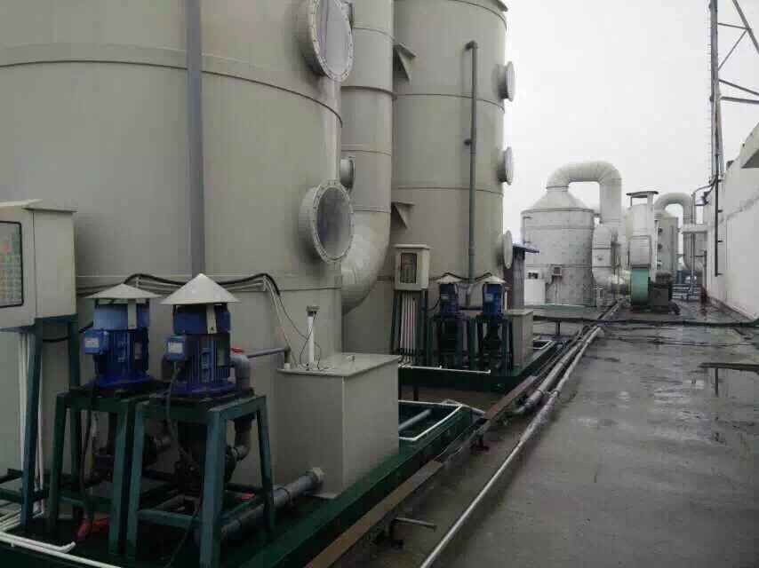 廢氣洗滌塔,也叫酸霧凈化塔,廢氣經(jīng)由填充式洗滌塔,采用氣液逆向吸收方式處理,即液體自塔頂向下以霧狀(或小液滴)噴撒而下。廢氣則由塔體(逆向流)達(dá)到氣液接觸之目的。此處理方式,可冷卻廢氣、調(diào)理氣體及去除顆粒,再經(jīng)過除霧段處理后,排入大氣中。