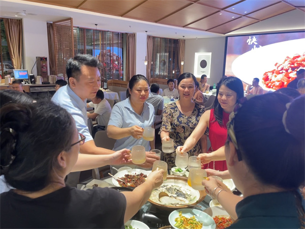 共聚一堂,暢享美酒佳肴。晚宴上大家邊吃邊聊,其樂融融。晚宴雖然是短暫的但是帶給大家的歡樂是持久的。